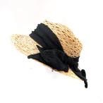 ペーパーハット レディース 麦わら帽子 つば広 リボン 春夏 サイズ調整 手編みペーパーRibbonエッジアップハット
