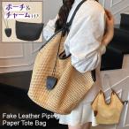 トートバッグ ペーパーバッグ レディース 大きめ A4 大容量 バケツ型 軽量 マチ広 肩掛け 夏 ポーチ付き バッグチャーム 帽子クリップ