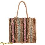 編みバッグ かごバッグ ストロー 虹色 2way 肩掛け ハンドバッグ 夏用 レディース お祭り レジャー お出掛け 海 トートかごバッグ