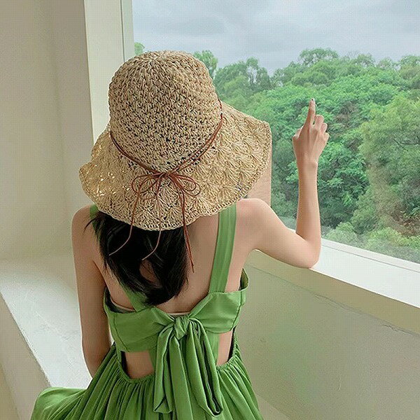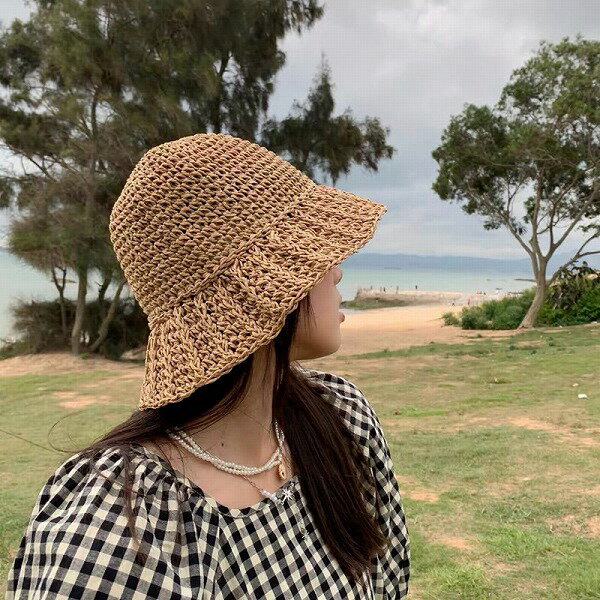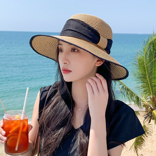 【新作】 レディース麦わら帽子草編み 小顔効果 日焼け止め カジュアル