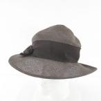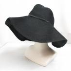 コムサデモード COMME CA DU MODE つば広 麦わら 帽子 ハット 57.5cm 黒 ブラック マニラ麻混 本革レザー装飾 レディース