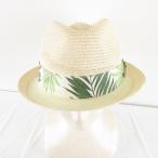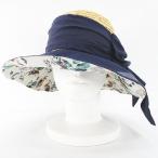 ユキコハナイ YUKIKO HANAI 麦わら帽子 つば広 M 紺系 ネイビー ボタニカル 小鳥 リボン ワイヤー入り レディース
