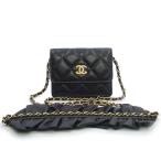 (新品・未使用品)シャネル CHANEL マトラッセ ミニ チェーン ウォレット カードケース 財布 ショルダーバッグ ラムレザー ブラック ゴールド金具 AP1895 箱付