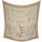 エルメス HERMES カレ140 LETTRES EQUESTRES レトル エスケトル ストール カシミヤ シルク ベージュ マルチカラー レディース 中古