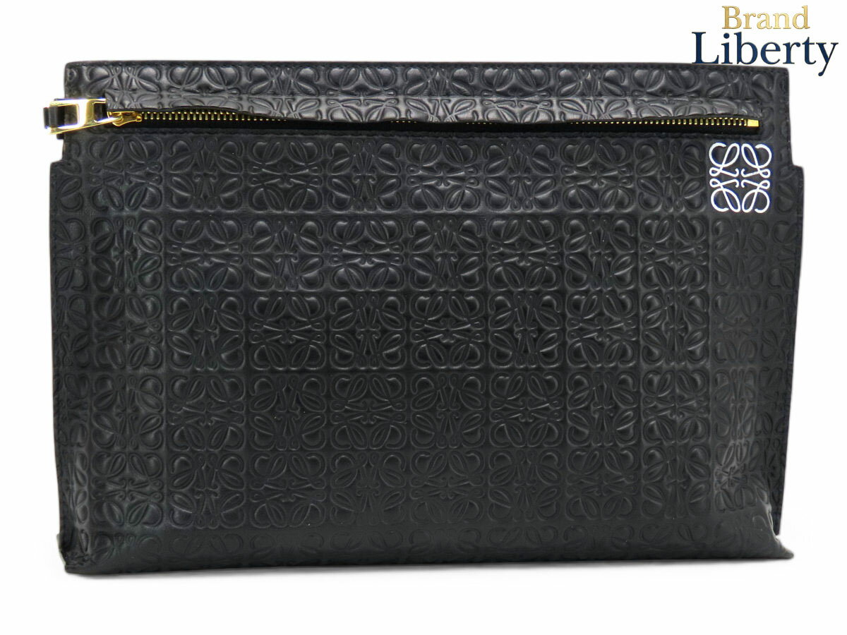 【美品】ロエベ LOEWE Tポーチ リピートアナグラム フラットポーチ セカンドバッグ クラッチバッグ ハンドバッグ ブラック ゴールド金具 カーフレザー 107.55.K05 【中古】