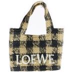ロエベ フォントトートバッグ チェック柄 2WAYバッグ ハンドバッグ ショルダーバッグ ミニバッグ ラフィア ゴールド金具