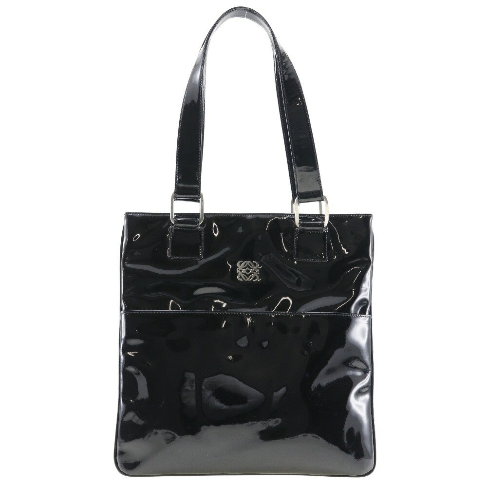 ロエベ LOEWE アナグラム トートバッグ エナメル スペイン製 黒 肩掛け 手提げ A4 マグネットタイプ anagram レディース【中古】B-ランク