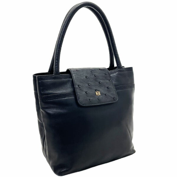 ロエベ ハンドバッグ アナグラムロゴ ミニバッグ ナッパ オーストリッチ レザー 革 ブラック 黒 LOEWE ミニハンドバッグ トートバッグ ミニトート 手提げ バッグ バック カバン 鞄 【中古】