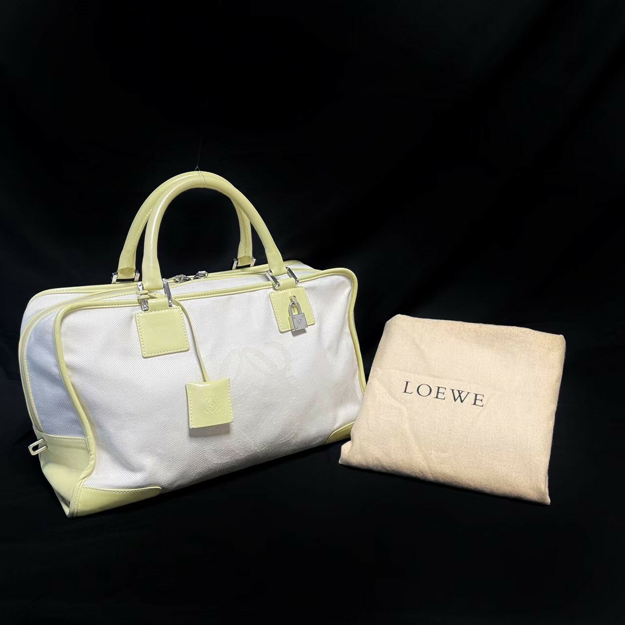 [中古]LOEWE ロエベ アマソナ 36 ハンドバッグ キャンバス アナグラム カデナ シルバー金具 レザーアイボリー 150403 レディース