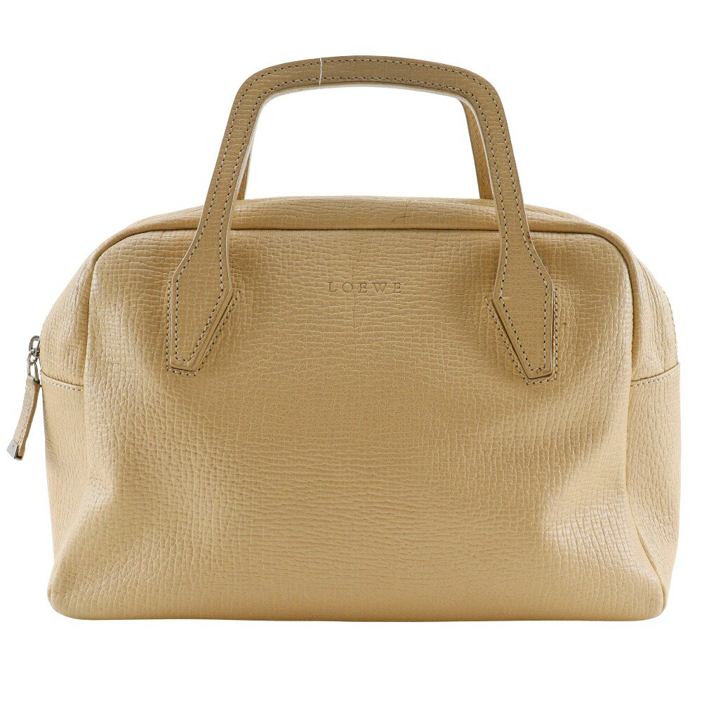 【スーパーセール10%OFF対象】ロエベ LOEWE ハンドバッグ ベージュ 型押しレザー ベージュ 手提げ A5 ファスナー レディース【中古】