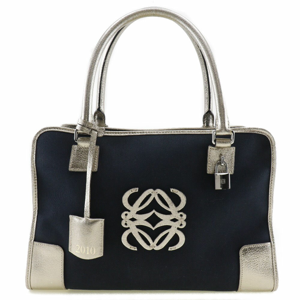 【スーパーセール10%OFF対象】ロエベ LOEWE アマソナ36 ハンドバッグ ボストンバッグ 2010年 キャンバス×レザー スペイン製 紺 ファスナー Amazona 36 レディース【中古】