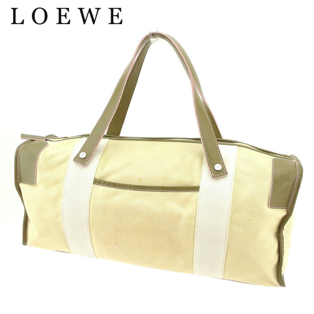【Fashion Special Fair 30%OFFクーポン】ロエベ ハンドバッグ ブランドバッグ バック ミニボストンバッグ アウトレット 夏 アイテム ベージュ グリーン ホワイト 白系 キャンバス×レザー アナグラム 送料無料 【中古】 t7787 ブランド ハイブランド ヴィンテージ 送料無料