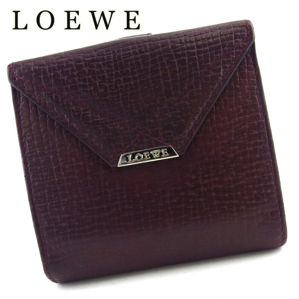 【Fashion Special Fair 30%OFFクーポン】ロエベ LOEWE 二つ折り財布 ロゴプレート パープル シルバー メンズ 中古 ブランド ハイブランド ヴィンテージ