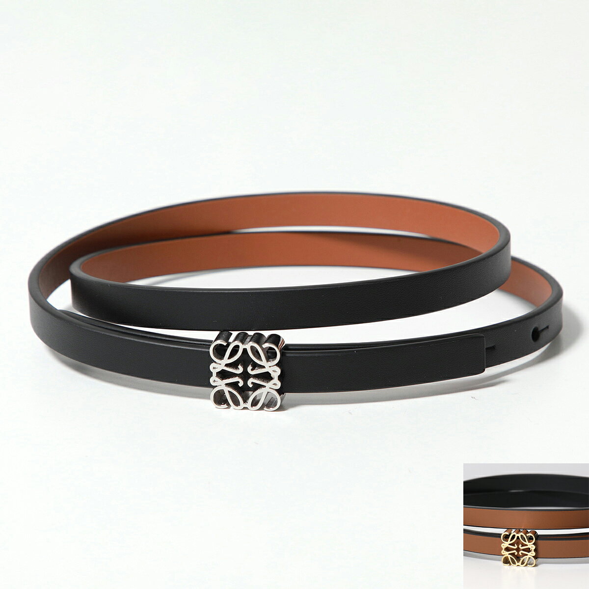 【最大2万円OFFクーポン対象・11/29~12/1限定】LOEWE ロエベ ナローベルト E82111BX01 レディース アナグラム リバーシブル レザー カラー2色 E82111BX011555