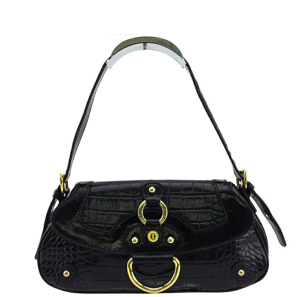 【Fashion Special Fair 30%OFFクーポン】ロベルタ・ディ・カメリーノ ショルダーバッグ クロコダイル型押し ブラック×ゴールド レディース 中古 Roberta di Camerino ブランド ハイブランド ヴィンテージ