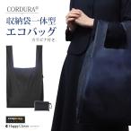 ポスト投函送料無料 ミリタリー級の丈夫さ CORDURA(コーデュラ)(R) ナイロン 収納袋一体型リボンエコバッグ カラビナ付き 濃紺 日本製 折りたたみ 袋 レジ袋