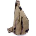 ボディバッグ ショルダーバッグ キャンバス地 ファスナー 付き レディース(カーキグリーン, Free Size)