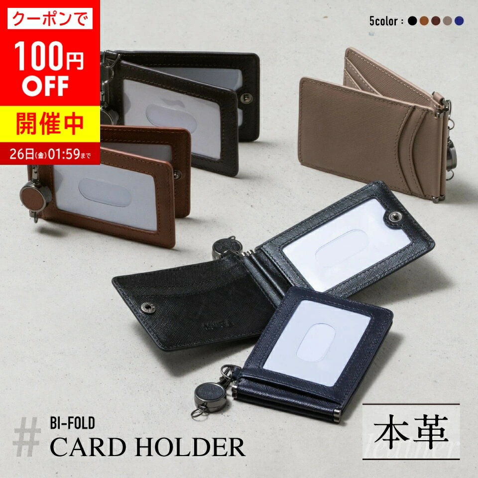 \クーポンで100円OFF♪/本革 パスケース リール付き 定期入れ 交通IC対応 カードホルダー 社員証入れ サフィアーノレザー 新生活 ビジネス 通勤 通学 学生 社会人 旅行 IDケース 伸縮リール 交通系IC 折りたたみ 免許証 切符入れ 無地 きれいめ バタフライ式 IDカード