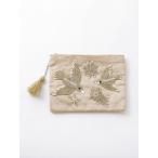 東京かんかん ビーズ鳥刺繍ポーチL ベージュ M42-1681BE