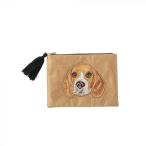 刺繍ポーチ 犬モチーフ ビーズ装飾 インド製 ハンドメイド ガジェット収納向け