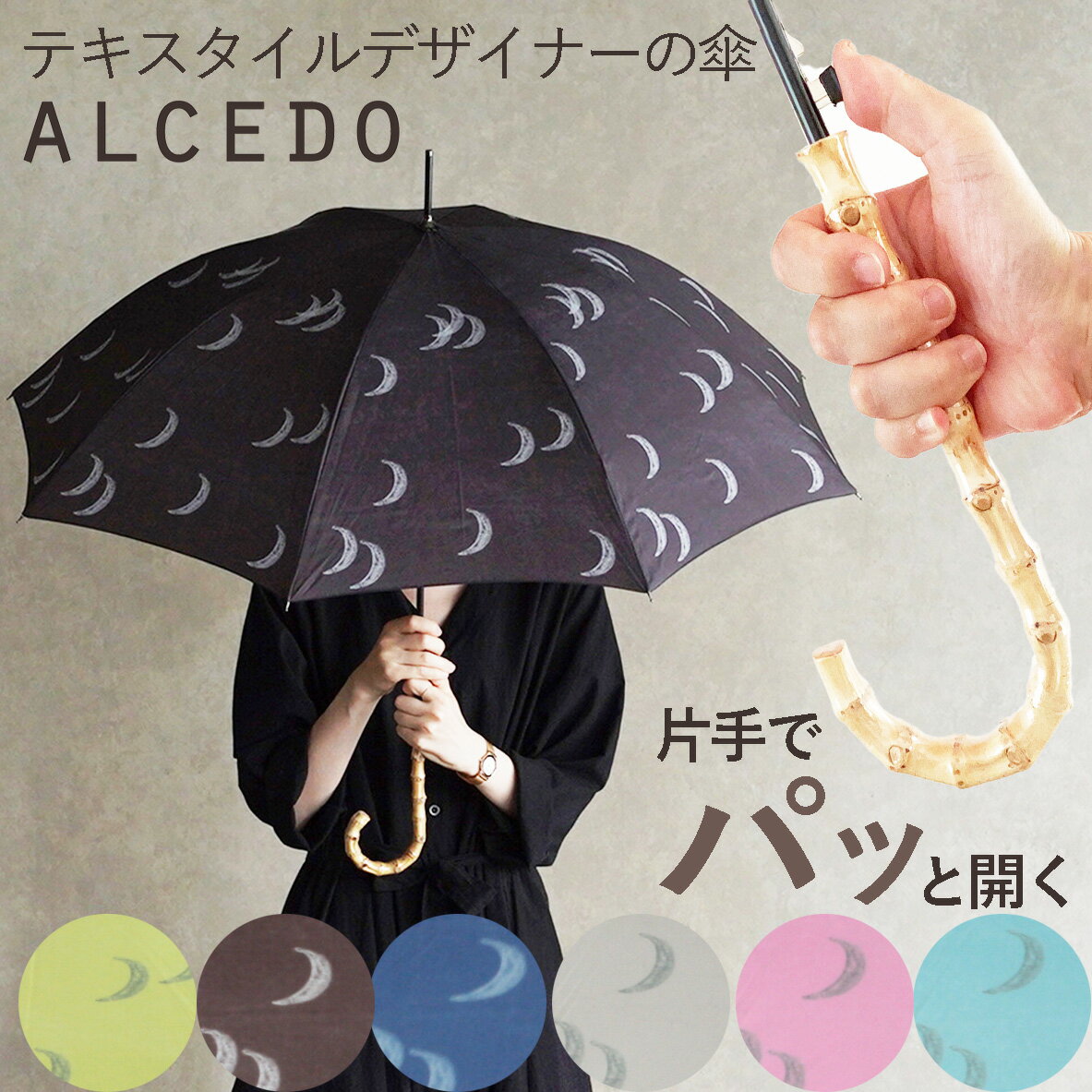 【マラソン全品P10倍】1年返品保証 ブランド直営 傘 レディース 晴雨兼用 軽量 長傘 バンブーハンドル ジャンプ傘 ALCEDO アルセド 雨傘 丈夫 北欧風 日傘 大きめ 竹 ワンタッチ ムーン 月 シンプル ナチュラル おしゃれ かわいい 誕生日 プレゼント 丈夫 UVカット 母の日