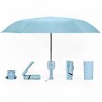 CAWKAY 日傘 扇風機付き 折り畳み傘 ファン パラソル 6本骨 U Vカット 日焼け防止 耐風 撥水 軽量 折りたたみ傘 晴雨兼用 (ブルー)