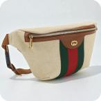 中古 グッチ ボディバッグ レディース ブランド GUCCI ヴィンテージキャンバス ベルトバッグ レザー 575082 ベージュ バッグ