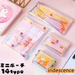 ポーチ ペンケース 小銭入れ 小物入れ 眼鏡ケース 化粧ポーチ レディース アクセサリー ビニール オーロラ ブルー ブラック