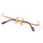 美品□Cartier カルティエ ヴィンテージ 2Cデコール ツーポイント リムレス メガネ 眼鏡 アイウェア ゴールド ボルドー □16 フランス製