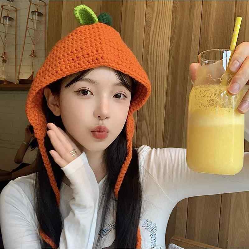 ニット帽 レディース 秋冬 韓国風 無地 保温 ニット イヤーマフ 小顔効果 かわいい おしゃれ オレンジ ベージュ カーキ グリーン2