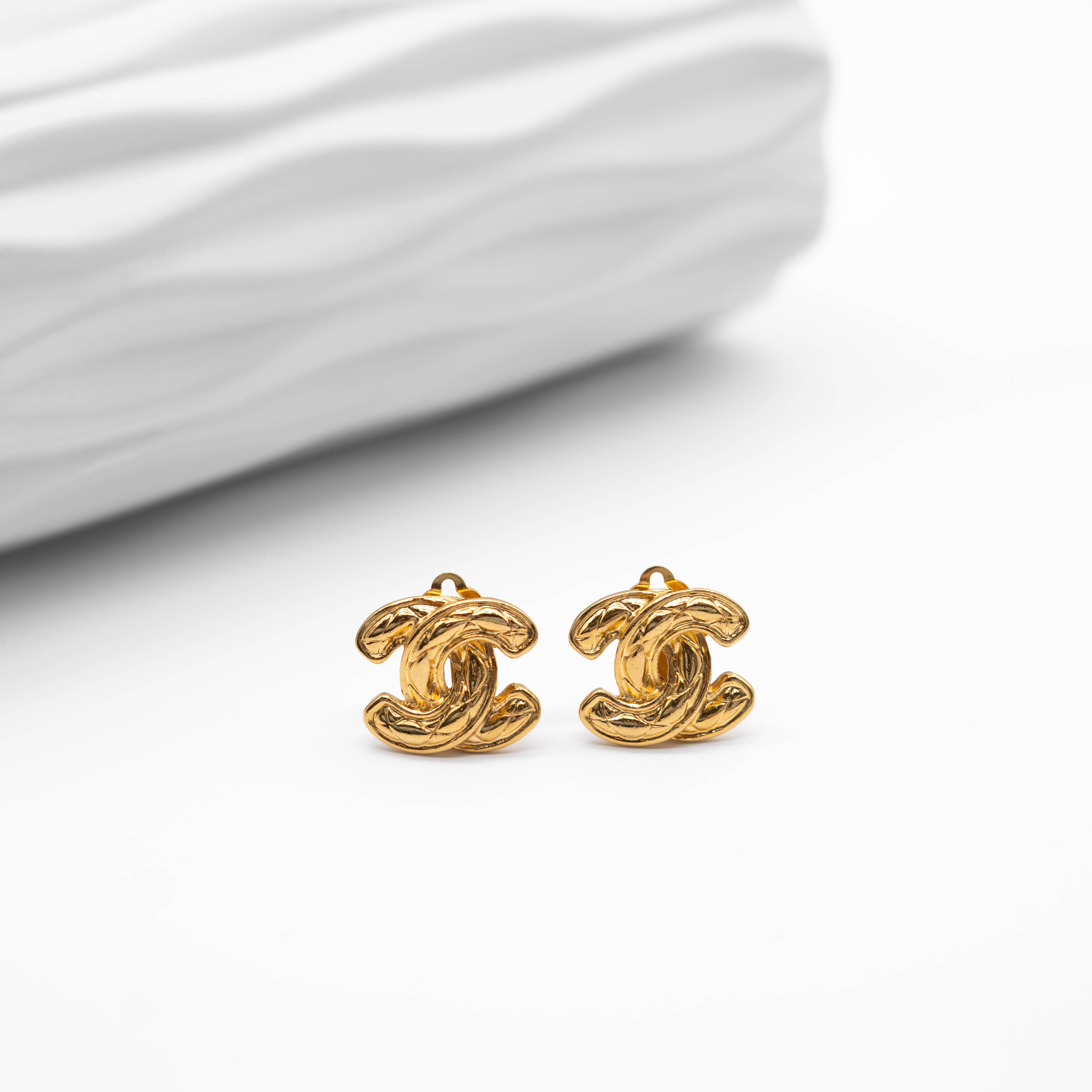 シャネル CHANEL ココマーク マトラッセ イヤリング 金色 GP 3.5cm ヴィンテージ ランクA アクセサリー レディース 中古