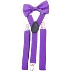 サスペンダー ボウタイ 2点セット メンズ レディース キッズ 作業用 y字 大きいサイズ 蝶ネクタイセット カジュアル (パープル)