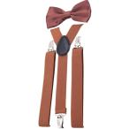 サスペンダー ボウタイ 2点セット メンズ レディース キッズ 作業用 y字 大きいサイズ 蝶ネクタイセット カジュアル (ブラウン)