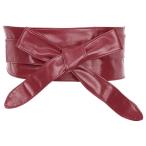 uxcell サッシュベルト フェイクレザー 幅広 太ベルト 蝶ネクタイ ウエスト リボン レディース ワインレッド 220cm
