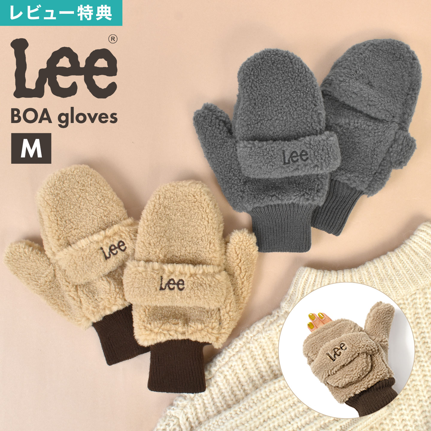 手袋 レディース ミトン Lee リー ボア もこもこ 指なし スマホ 対応 グローブ 2way 冬 暖かい あったか 防寒 ふわふわ おしゃれ かわいい 大人 女性 女子 中学生 高校生 通勤 通学 自転車 ベージュ グレー ボアグローブ アウトドア プレゼント ギフト クリスマス