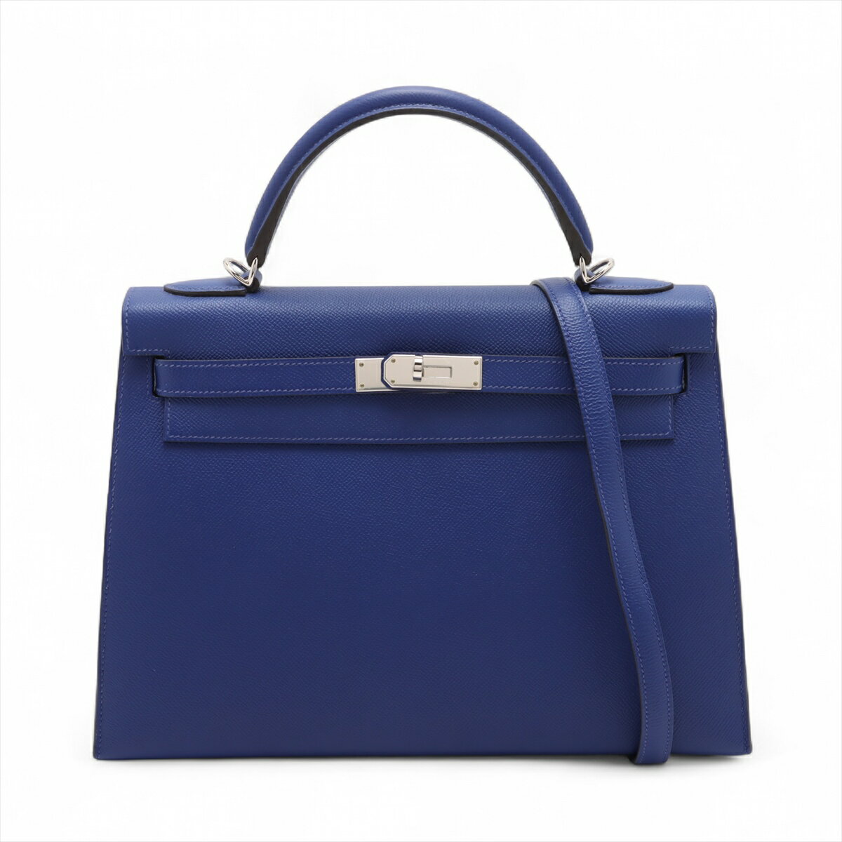 【中古】エルメス ケリー32 セリエ ヴォーエプソン ブルーエレクトリック シルバー金具 R:2014年 ツイリー付き