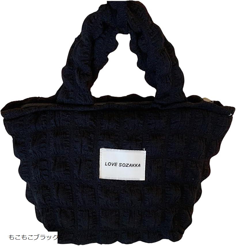 ポップコーンバッグ トート キルティング 大容量 マザーズ 軽量 レディース ワッフル 韓国 (もこもこブラックS)