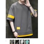 半袖Tシャツ メンズ おしゃれ カットソー Tシャツ カラー配色 カジュアルTシャツ ティーシャツ 夏物