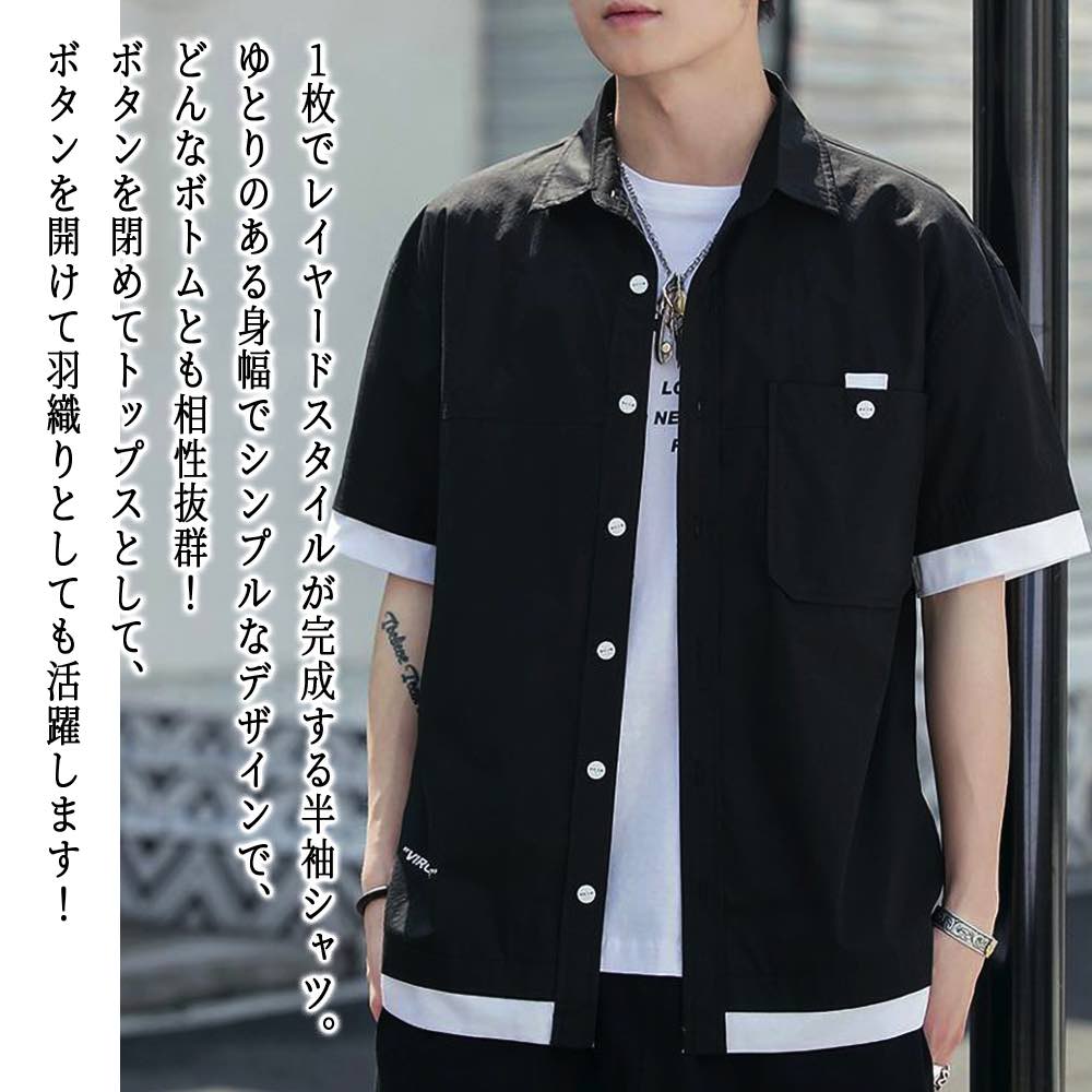 【\クーポン利用で20%OFF!/】 シャツ メンズ フェイクレイヤードシャツ オシャレ 涼しい ロング フランネル オフィス ネルシャツ 薄手 襟付き 春 大きいサイズ ブランド 夏 黒 カジュアル 派手 おもしろ ノーカラー おしゃれ Tシャツ コーデ 半袖 ドルマン 肌着