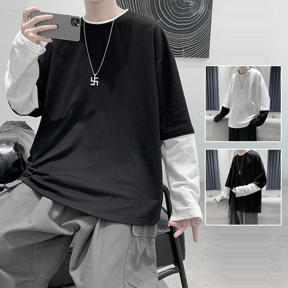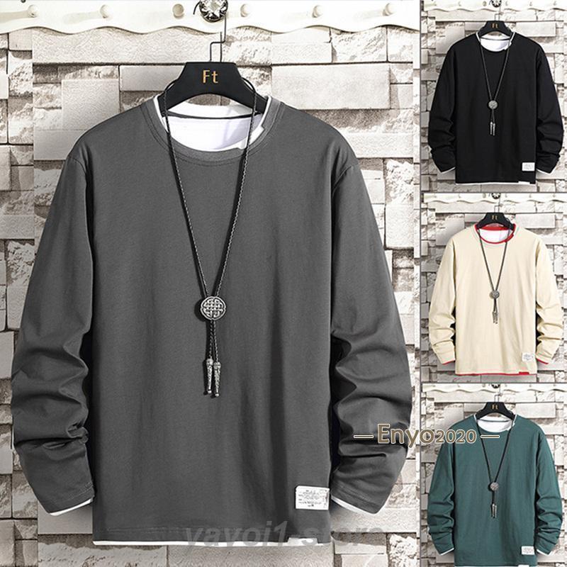 【期間限定10%OFF】Tシャツ メンズ 長袖 春服 重ね着風 ロングtシャツ 大きいサイズ トップス ゆったり おしゃれ tシャツ カジュアル 人気 快適 秋 冬 春