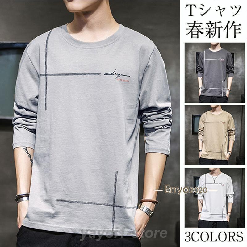 【期間限定10%OFF】長袖 Tシャツ メンズ 丸首 オシャレTシャツ 長袖トップス 無地 大きいサイズTシャツ メンズファッション 綿トップス カジュアル