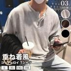 コーデュロイ tシャツメンズ 長袖 ヘンリーネック 重ね着風 レイヤード風 無地 カットソー インナー トップス おしゃれ きれ