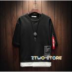 カジュアル Tシャツ メンズ 半袖 五分袖 トップス おしゃれ ティーシャツ 無地 夏服
