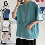 半袖Tシャツ メンズ おしゃれ Tシャツ 無地Tシャツ Vネック ティーシャツ レイヤード風 トップス ゆったり 夏 夏服 カジュアル カットソー