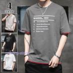 半袖Tシャツ メンズ おしゃれ Tシャツ 重ね着風 英字柄 五分袖Tシャツ ゆったり 大きいサイズ 夏 敬老の日