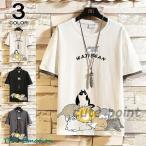 半袖Tシャツ メンズ おしゃれ Tシャツ 切り替え 猫柄 五分袖Tシャツ 大きいサイズ 夏 可愛い
