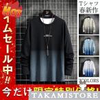 Tシャツ メンズ 長袖 グラデーション トップス ゆったり おしゃれ 無地 部屋着 お兄系 春秋 大きいサイズ ゆったり かっこいい