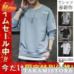 トレーナー メンズ 長袖 Tシャツ スエット ロングtシャツ トップス ゆったり プリント おしゃれ 無地 部屋着 お兄系 春秋 大きいサイズ