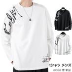 Tシャツ メンズ 長袖 カットソー トップス ゆったり プリント おしゃれ 無地 部屋着 お兄系 春 秋 大きいサイズ ゆったり かっこいい