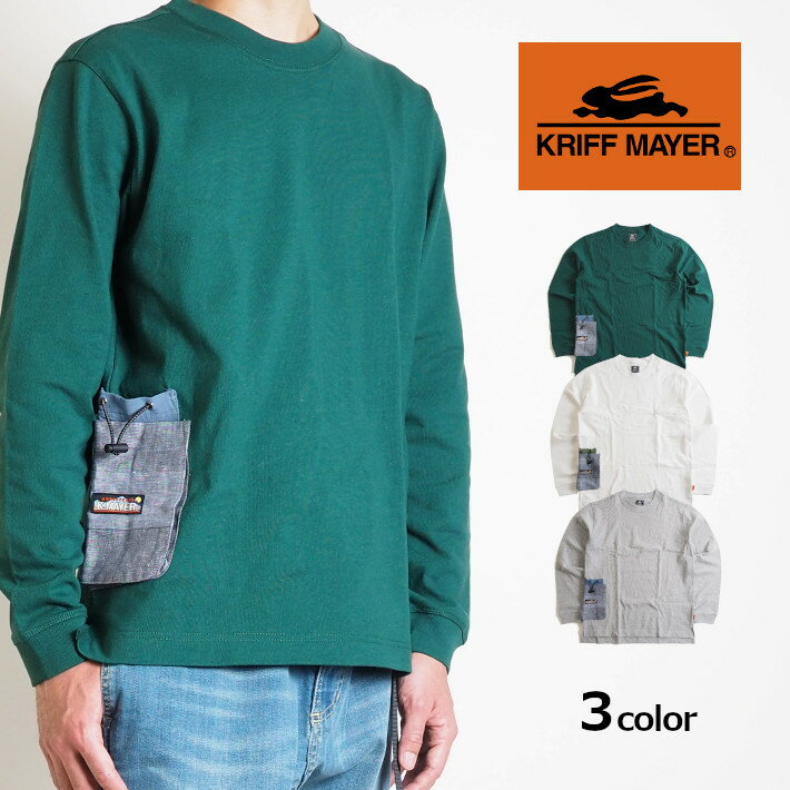 【スーパーセール50%OFF】KRIFF MAYER クリフメイヤー ロンT 長袖 サイドポケット (2035107) 長袖Tシャツ ロゴロンT ロンティー クルーネック 丸首 白黒緑 メンズ カジュアル アメカジ アウトドア ブランド
